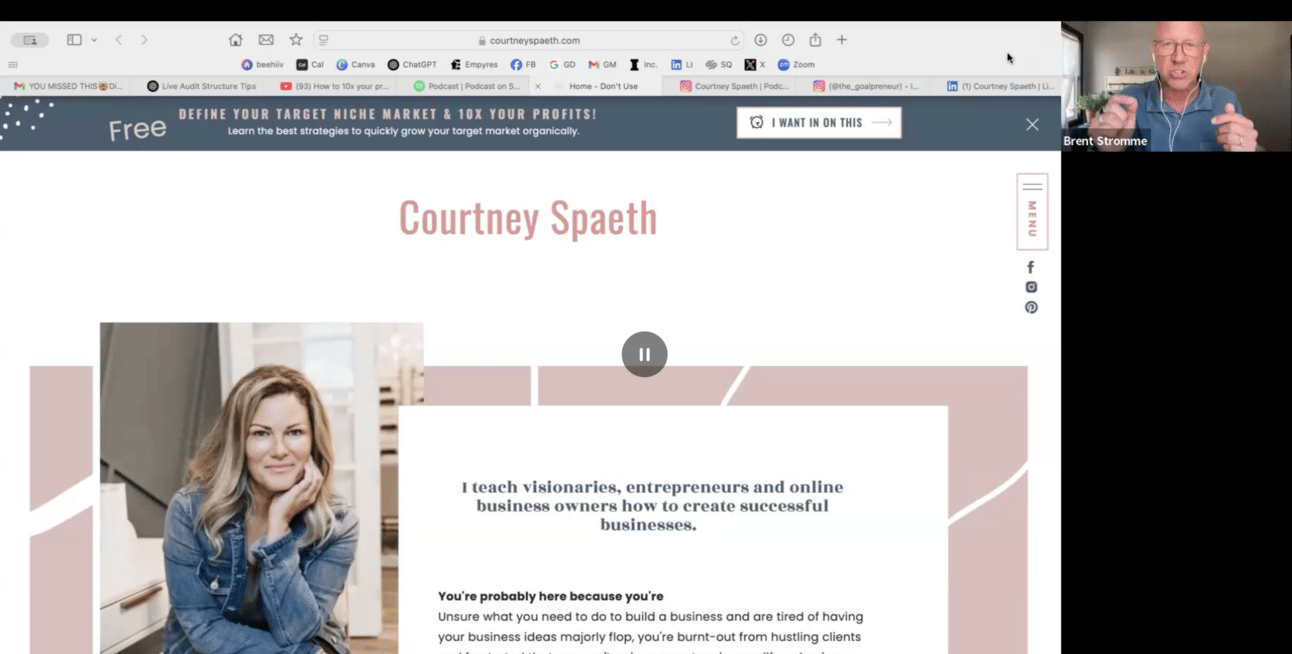 We had such a great time on yesterday’s call as I walked through a live audit of Courtney Spaeth’s website, social media, and branding. Huge thanks to Courtney for boldly stepping into the spotlight … your transparency helped all of us see ways we can level up our own online presence to attract more customers and make a bigger impact.