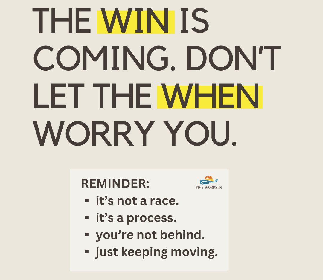 If you grant yourself Grace, you have a chance to see it through. Take your time. Find your rhythm. Enjoy the journey. Take a breath. Take a break. Take your time.